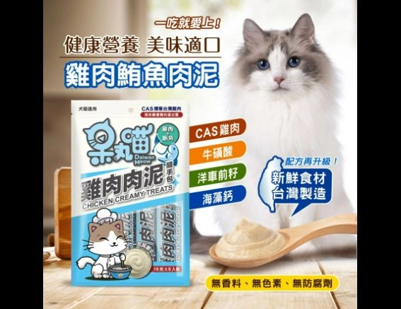 成分:雞肉、鮪魚、雞肝、雞油、蛋黃粉、魚水解蛋白、酵母粉、柴魚、牛磺酸、洋車前籽、海藻鈣、增稠劑、水