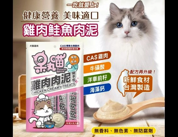 成分:雞肉、鮭魚、雞肝、雞油、蛋黃粉、魚水解蛋白、酵母粉、柴魚、牛磺酸、洋車前籽、海藻鈣、增稠劑、水
